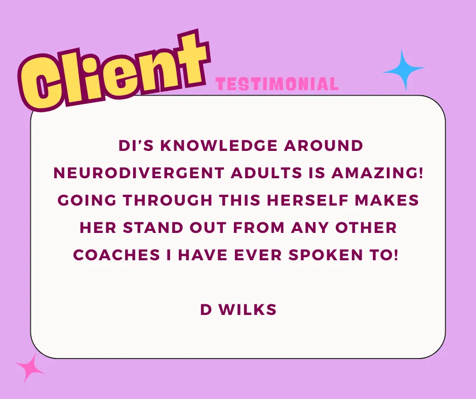 I am specifically trained in ADHD coaching which is accredited by the Association for coaching and will be starting my Master NLP qualification in January 2026!